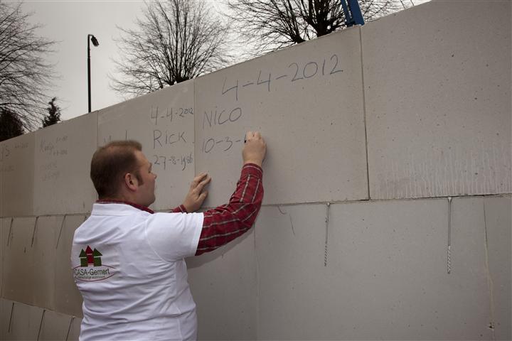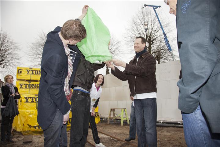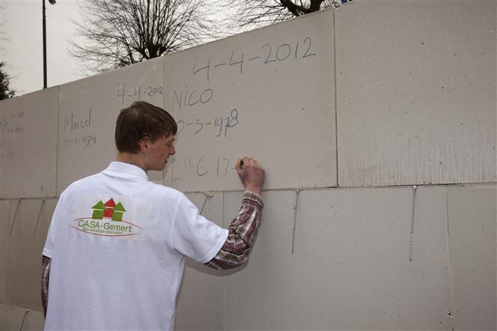 6 april 2012 – De bouw van het CASA gebouw werd gestart door een 1e steenlegging door de toekomstige bewoners.